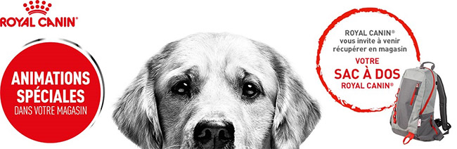 En effet, dès aujourd’hui et dans la limite des stocks disponibles, elle vous propose de venir retirer un sac à dos Royal Canin gratuit dans le magasin distributeur le plus proche. Cette opération sans obligation d’achat est valable à des dates spécifiques.