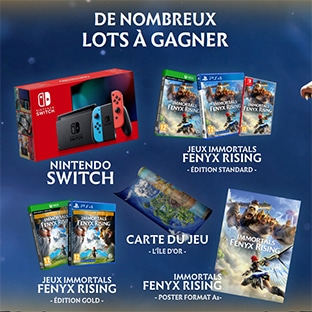 En participant à ces instants gagnant, vous aurez peut-être la chance de gagner une console Switch, l’une des 15 cartes « L’île d’or », l’un des 20 posters au format A2 ou encore l’un des 25 jeux « Immortals Fenyx Rising » en édition Standard ou Gold pour PS4, Switch ou Xbox.