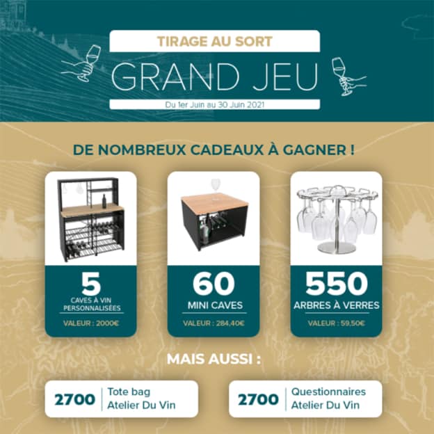 En y prenant part dès aujourd’hui, vous aurez peut-être la chance de gagner l’un des 6’015 cadeaux en jeu parmi des caves à vin personnalisées, des arbres à verres, des mini caves et d’autres dotations.