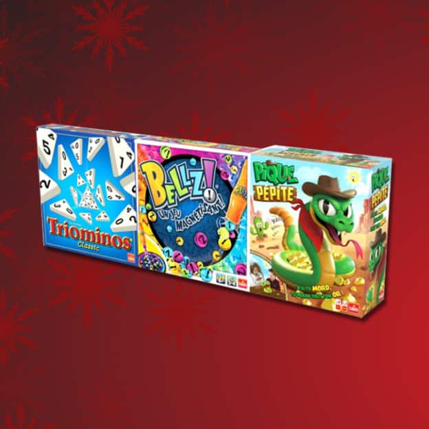 En effet, dans le catalogue de Noël de King Jouet nous avons découvert un prix super attractif sur un lot de 3 jeux Goliath. Grâce à cette opération, vous pouvez obtenir « Triominos », « Bellz » et « Pique Pépite » pour seulement 22,99€. De quoi offrir de nombreux jeux enfants, sans casser sa tirelire !